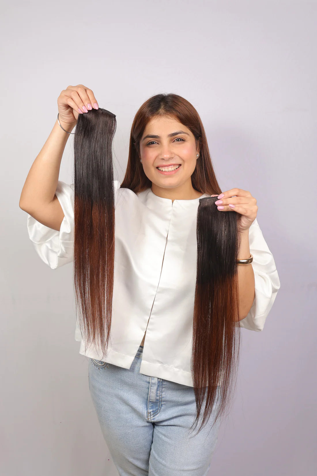 Elevate your hair game with our 3-Clip Ombré Set, crafted from 100% real human hair for the most natural look and feel. Designed with a soft, seamless color transition, this set blends beautifully into layered or colored hair for a flawless finish.